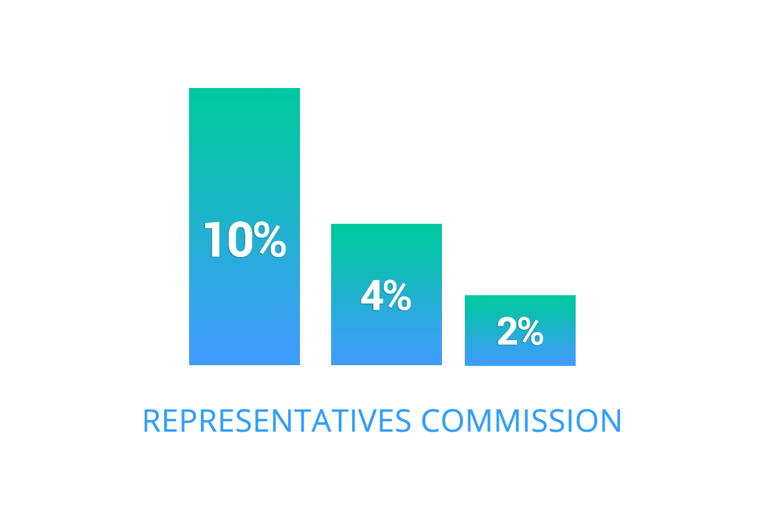 Representatives are awarded with twice as much referral commission, which is 10%-4%-2% of your referral’s deposit.